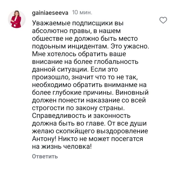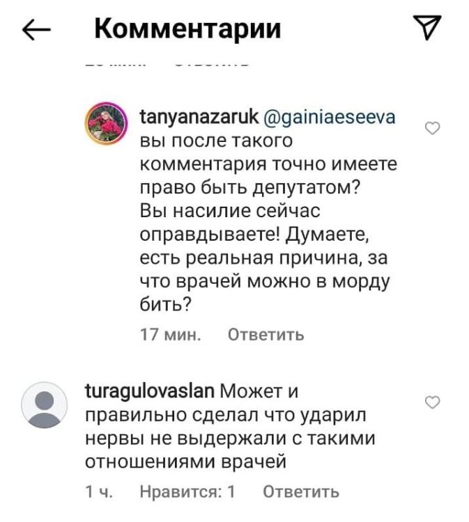 Гайния Есеева оставила комментарий в социальных сетях, который, по мнению пользователей, оправдывает насильственные действия в отношении медработника