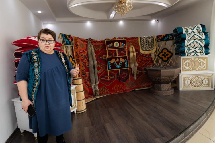Художественный руководитель районного Дома культуры имени Умурзакова села Айет Айман Зыбалева показала, как украсили холл здания к Наурызу