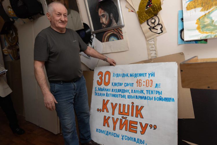 За более чем полвека работы он стал настоящей легендой местной сцены. Виктор Николаевич — художник-декоратор, автор герба района имени Беимбета Майлина, мастер, который делает реквизит и декорации не только для местного театра, но и для других Домов культуры. Коллеги ласково называют его дядей Витей.