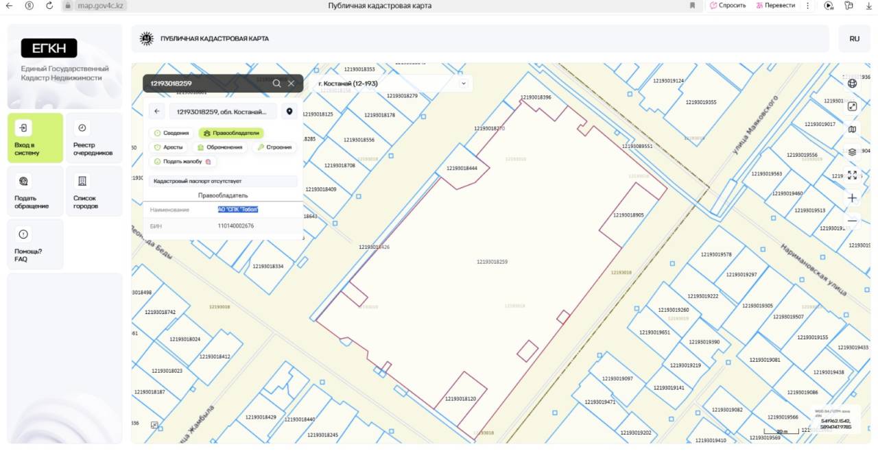 В списке числится 36 адресов. Больше всего площади — 1,4326 гектара — числится за АО «Социально-предпринимательская корпорация «Тобол». Этот участок относится к категории «земли населенных пунктов». Она обычно предназначена для развития и застройки городов, поселков и сельских населенных пунктов. Вид права у СПК «Тобол» на эту землю – временное возмездное долгосрочное землепользование. В Казахстане она предоставляется на срок от 5 до 49 лет (для определенных целей может быть и больше, но 49 лет – это максимальный срок для большинства случаев).