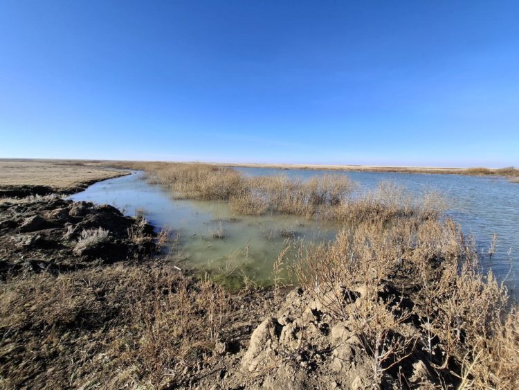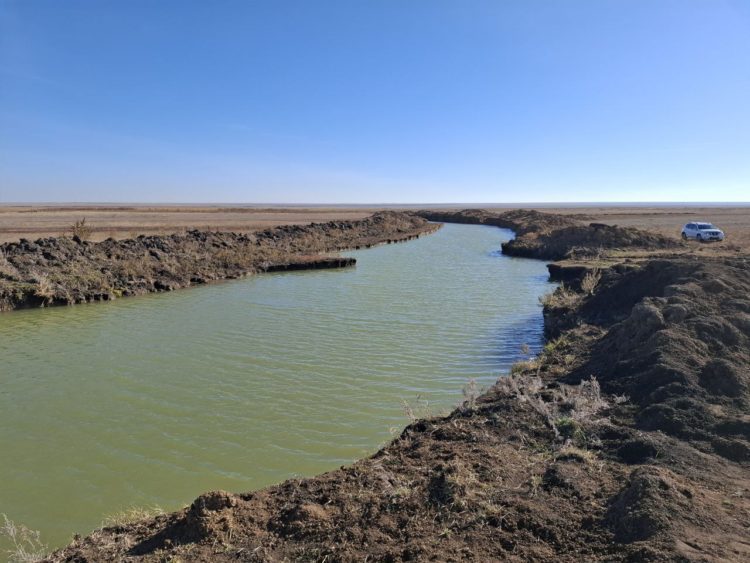 Именно сильнейший поток воды изменил рельеф канала. Всю прошлую зиму мощный напор скопившейся паводковой воды стремился вниз по течению, невзирая на морозы. Сегодня поток ослаб, почти вся территория, которую заняли разлившиеся озера Карасуского района весной 2024 года, освобождена от водного плена.