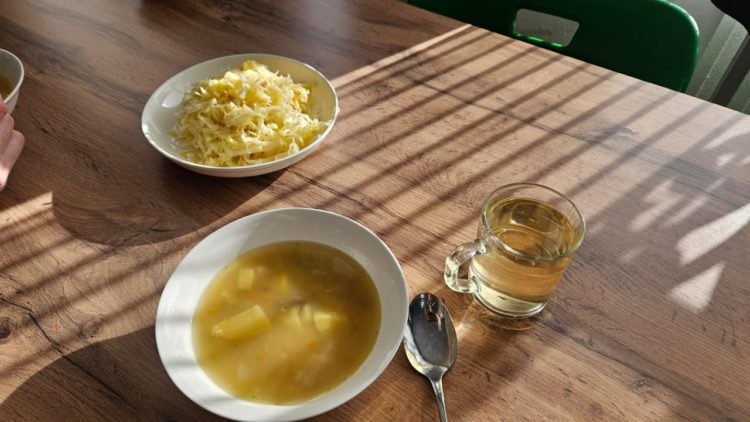 Все было попробовано и выпито. Суп довольно вкусный, салат свежий. Сочетание капусты и яблок показалось необычным, сладковатым, но на деле это оказалось вполне интересно. Лимонный напиток отдаленно напоминал лимонный сок, что в целом вкусно.