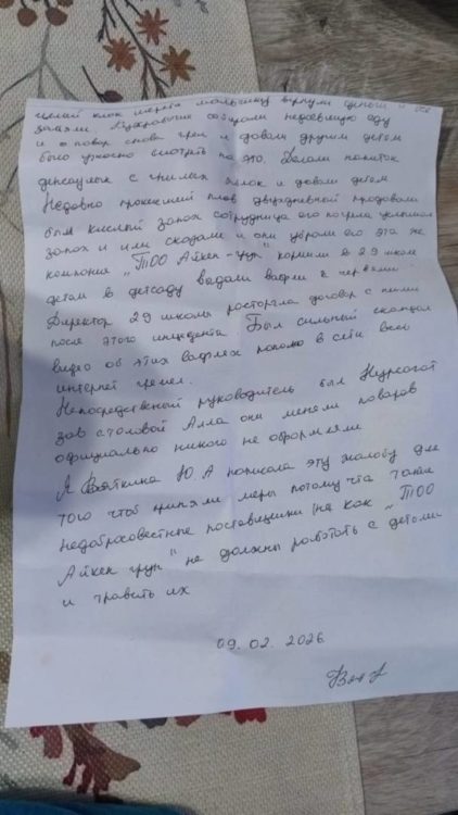 Напомним, что ранее бывшая сотрудница пищеблока школы-гимназии им. Б. Момышулы (школа №5), пекарь Юлия Вяткина, распространила в соцсетях жалобу, в которой указала: в меню для школьников были собачий фарш и протухшие окорочка. Это стало шоком для родителей, чьи дети весь январь периодически жаловались на качество питания.